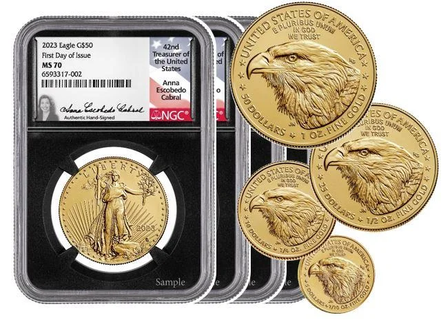 2023 4-Coin American Gold Eagles Set, FDI, MS70, NGC, Anna Cabral