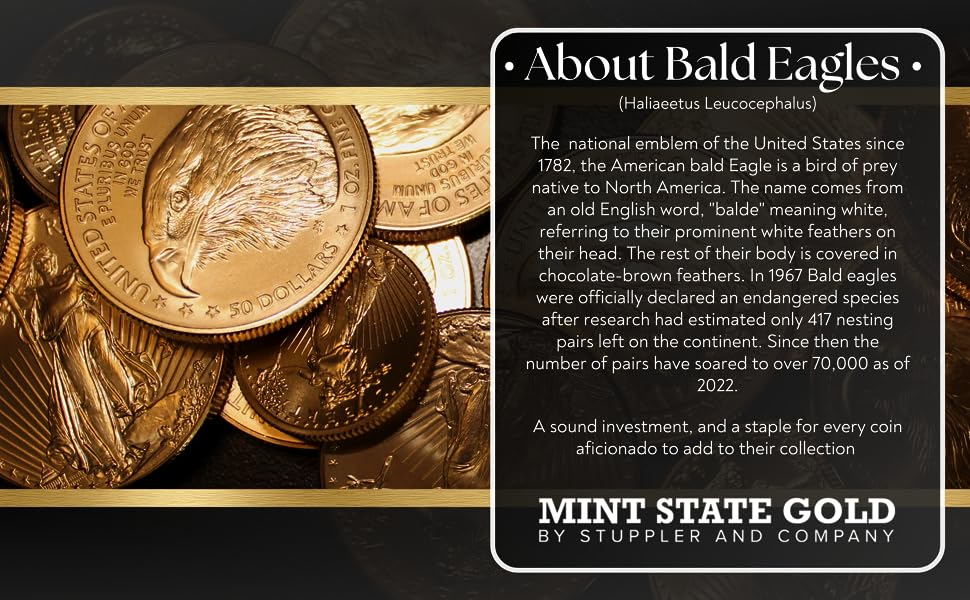 American Gold Eagle Coins First authorized by Congress for release in 1986, the American Gold Eagles became one of the most popular coins in the world. These coins are the first Gold coins backed by the United States government for investment. To appeal to a wide variety of customers, the American Gold Eagle coins are available in four different sizes, containing 1/10, 1/4, 1/2 or 1 oz of fine Gold. All four sizes in 2023 feature the same new design and are fully guaranteed for their metal content and purity by the United States government.